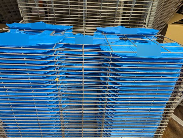先週は毎日このブルー地のエコバックへ印刷加工してきました。